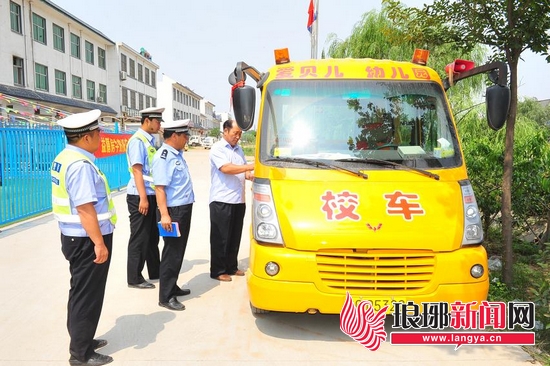 河东交警对校车进行安全检查 拧紧“安全阀”