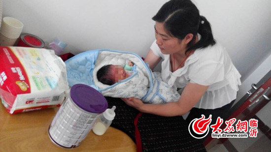 23日下午4时许,大众网记者来到费县公安局刑警大队。记者看到,细心的女民警正在小心地呵护疑似被拐卖的女婴,还买来尿不湿和奶粉。