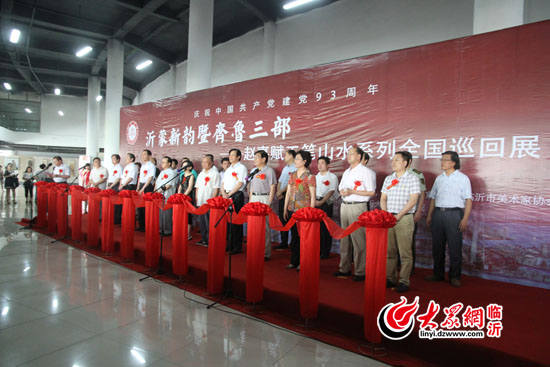 在庆祝中国共产党建党93周年之际,29日上午,临沂大学举行“暨齐鲁三部--赵嘉赋先生工笔山水系列全国巡回展”。本次画展共展出作品60余副,吸引了众多艺术爱好者前来参观。