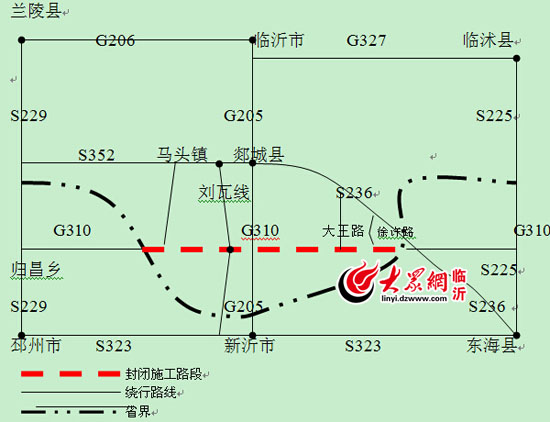 310国道郯城段封闭施工绕行路线示意图