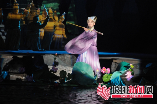 夏夜降临,沂河沉静。在万顷碧波中的湖心岛,华丽的水幕腾空而起,璀璨的灯光点亮夜空,大型水上实景演出《蒙山沂水》正在这里激情上演。精彩的歌舞凌波而出,为观众们带来了一场绚丽壮观、唯美抒情的视觉盛宴。华美的服饰、美妙的音乐、夺目的灯光,完美地融入沂河夜景之中,给人无限的惊艳和赞叹。