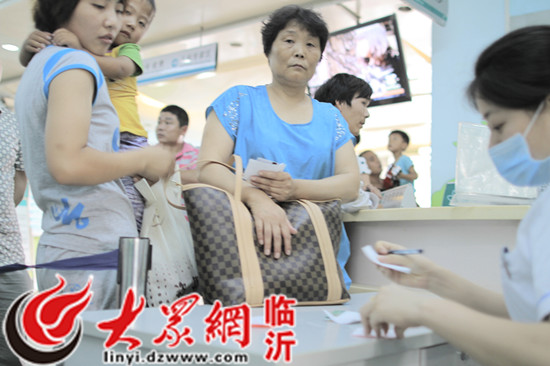 临沂市人民医院儿科等待就诊的患儿及家长排起了长队
