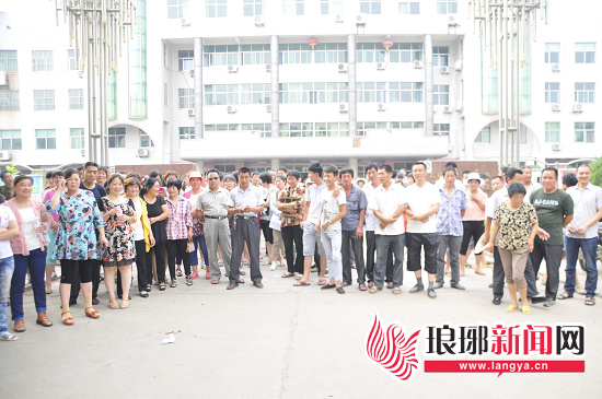 莒南县教育体育局门口聚集了很多家长和学生
