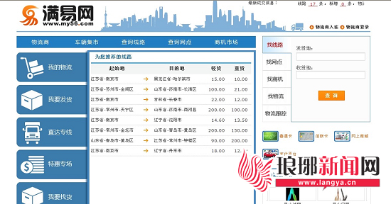 记者注册了一个个人账号,登陆满易网主页发现,其个人页面和淘宝网有些相似,可以随时通过网络查询货源、车源、物流网点、优惠线路、车辆信息等。