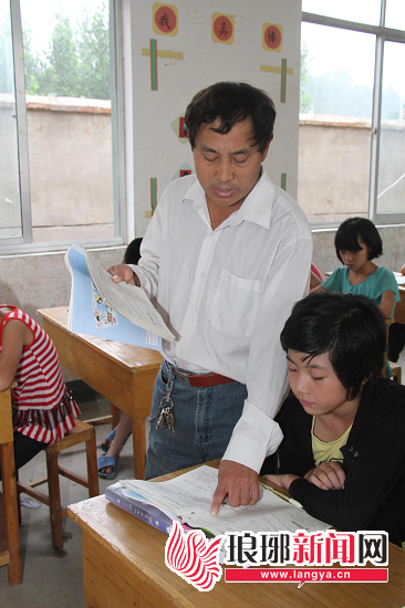 刘金忠在课堂上耐心地辅导学生。