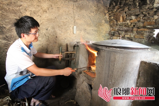 炎热的夏天,李中强正在烧火做饭