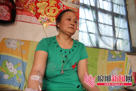 因为还在化疗,李中强母亲的胳膊上一直插着输液管