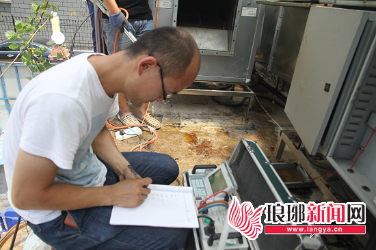 在楼顶的油烟排气筒旁边,环保局的工作人员已经开始了收集检测,一位工作人员手握接收杆一直站在排气筒旁,另一位工作人员仔细地看着检测仪里的数据,并不时地进行记录,整个油烟的收集检测持续了一个多小时。“这家店的油烟设备比较先进,而且刚投入使用不久,其油烟净化效果比较好。”环保工作人员称。