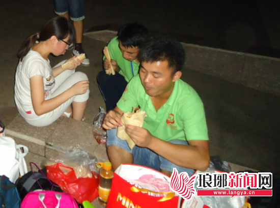 煎饼、馒头、咸菜和汗水组成了一天的生活,脚很累,肚子很饿,但还是很快乐……凌晨零点2分,大家都趴下睡了,我还不困,媒体组还要来拍照,好辛苦。不管怎样,明天继续加油。