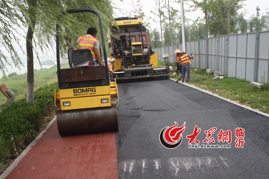 “这条路有两种颜色,还挺特别。”24日,在祊河右岸,兰山区市民王先生走在道路上,发现道路的颜色和以前不一样,感慨地说。他们沿途中见到了正在铺设道路的工作人员,于是咨询了相关的事情。临沂市园林局发展规划科副科长卢绪杰说:“现在正在对道路进行改造,把道路升级绿道,市民可以更好地与大自然接触。”