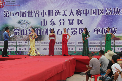 临沂网讯:2014年8月1日到2日,一场国际性顶级大赛——第64届世界小姐中国区总决赛山东赛区临沂站在金伯利钻石矿和沂蒙山龟蒙景区分别举行。