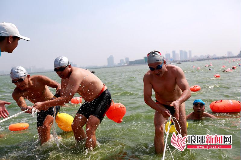 全民健身日 360名游泳爱好者横渡沂河