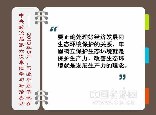 核心提示:媒体梳理十八大后习近平对生态文明建设所作的一系列论述。其中,2013年5月,习近平在中央政治局第六次集体学习时指出,“要正确处理好经济发展同生态环境保护的关系,牢固树立保护生态环境就是保护生产力、改善生态环境就是发展生产力的理念”。