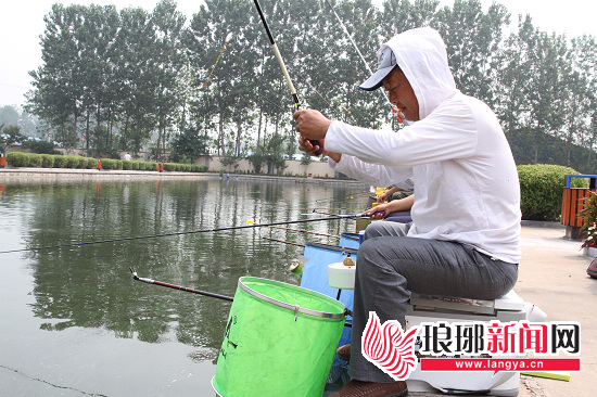 垂钓爱好者正在化绍新钓鱼学校为几天后的比赛试调