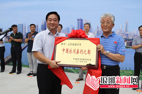 中国渔业协会会长、中国休闲垂钓协会会长齐景发将“临沂-中国休闲垂钓之都”的牌匾颁给临沂市委常委、副市长尹长友,宣告临沂成为我省首个获“中国休闲垂钓之都”这一殊荣的城市。