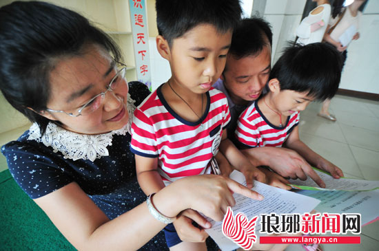 20日,沂河实验学校,一对龙凤胎兄妹由爸爸妈妈带着一起前来报到。