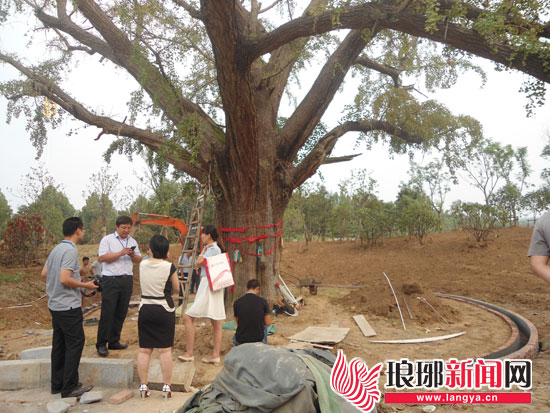 沂河湾项目景观工程师介绍,项目施工严格按照杭州园林城建设计院提供的设计方案进行,古树也是沂河湾的卖点之一,希望尽最大努力保护好它,7月3日,开发商已经根据开发区园林局提供的保护方案,对古树进行了一系列抢救。“先给古树打了营养吊针,把古树周围的土层也挪走了不少。”