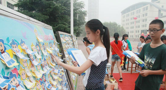 在临沂十二中,新生们正在把自己写下的心愿卡黏贴到心愿墙上。