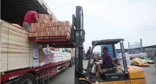 工作人员正在装货