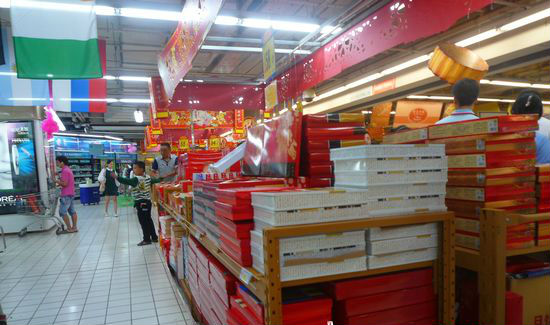 货架上的礼盒月饼备受冷落