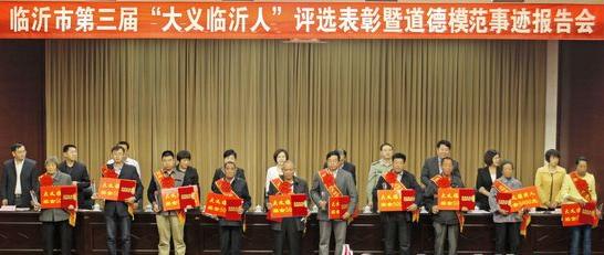 当天,第三届“大义临沂人”评选活动正式揭晓。为大力弘扬沂蒙精神和时代精神,积极培育和践行社会主义核心价值观,2011年,临沂市委宣传部、临沂市文明办等七部门主办,鲁南商报承办,发起开展了大义临沂人评选活动,活动已历时四年,先模人物层出不穷,各界好评如潮,大义临沂成为继沂蒙精神之后又一亮丽的城市品牌。