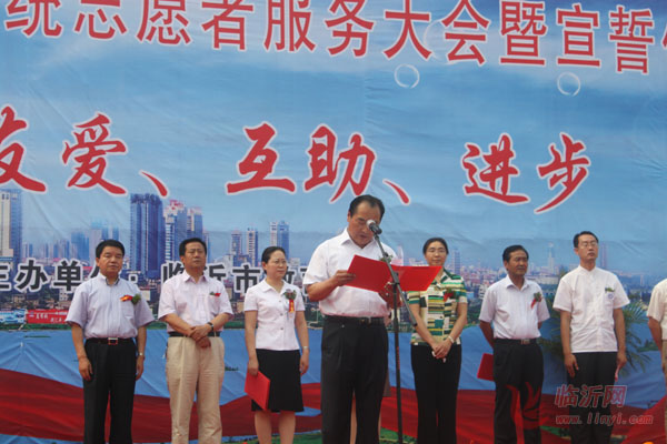 临沂网讯6月20日,全市教育系统志愿者服务大会暨宣誓仪式在沂蒙广场圆满举行。此次服务大会按照市创城办、市文明委的统一部署和要求,由市教育局主办。市各级领导和500余名教师代表参加了本次大会。