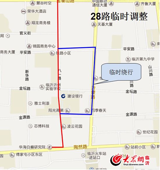 临沂:28路公交线路临时调整