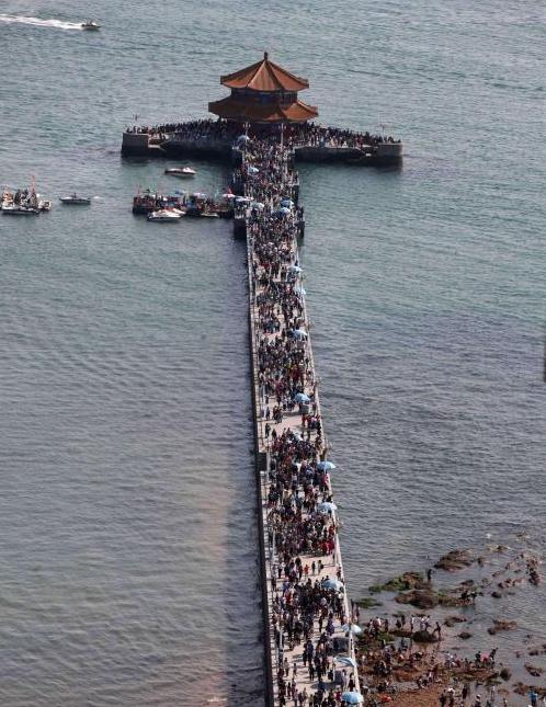 青岛栈桥人涌如潮 栈桥变“人桥”
