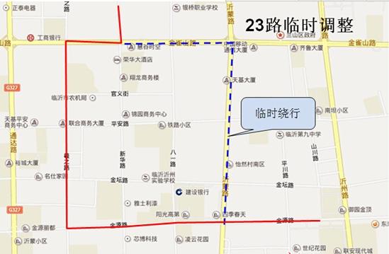 10日下午,大众网记者从临沂市公交集团获悉,因新华路与金源路交会处封闭施工,车辆无法通行,自即日起,公交集团23路公交线路临时调整:由小埠东发车沿原线路运行至金源路向西—沂蒙路向北—金雀山路向西—新华路向北恢复原线路运营。临时取消停靠工行家属院、盛世华庭、市运输管理处、三里庄、信托大厦、桃源海鲜渔港6处站点。