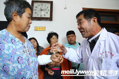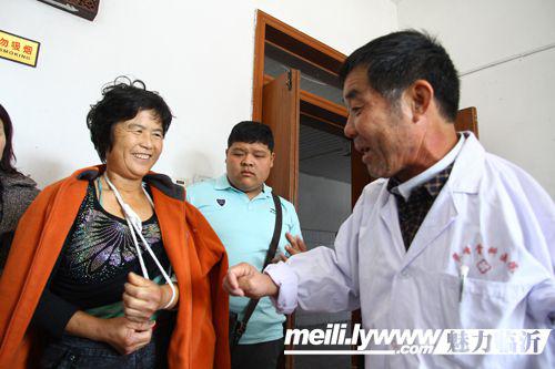 病人脸上的微笑是对潘院长细心照料的最大回报。