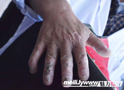 因为长期受射线影响,潘峰勋的手指已经溃烂。