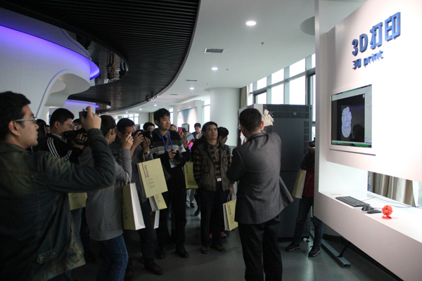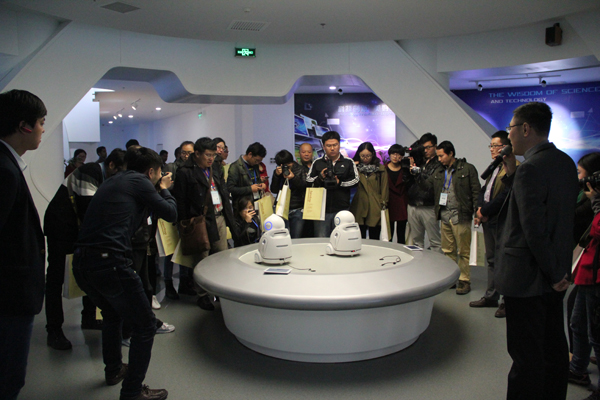 一走进软件产业园,各种高新科技产品让记者们目不暇接。在展厅门口,一对造型憨态可掬的机器人正迎接着采访团的到来。“小优,给大家唱个歌听!”工作人员对着其中一个机器人说。“好的!那我就给大家唱一首。‘别看我只是一只羊,绿草因为我变得更香…’”名叫小优的机器人欢快的唱起了动画片喜洋洋的主题曲,可爱的样子让围观的记者们忍俊不禁。工作人员介绍,这些可爱的机器人可以通过声音控制,与人们进行交流互动,在幼儿启蒙方面能起重要作用。