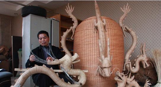 近日,临沭县52岁柳编能手周圣福创作的“地动仪”即将完工,这件作品是他耗费1年心血精心编制而成,这个“地动仪”高1.8米、重达两百余斤,8条1.5米长的小龙维纱维肖,让人看后啧啧称奇。