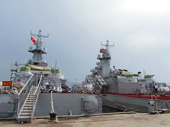 据越南《人民军队报》报道,越南海军的两艘闪电级(Tarantul V/Project 1241.8)导弹快艇HQ-375、HQ-376于6月19日到20日与中国海军会合,执行北部湾第11次联合巡逻任务。之后将穿越琼州海峡,访问湛江港。