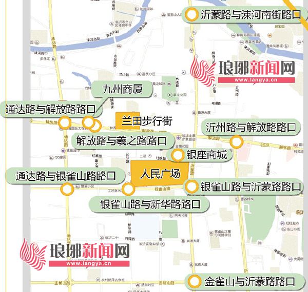 据交警部门调研预判,12月24日、25日17时至24时,人民广场、兰田步行街、九州商厦、银座商城、东方不夜城,滨河路、金雀山路与沂蒙路路口、银雀山路与沂蒙路路口、银雀山路与新华路路口、解放路与羲之路路口、沂州路与解放路路口、沂蒙路与涑河南街路口、通达路与解放路路口、通达路与银雀山路路口、滨河路与沂蒙路路口、聚才路与通达路路口等路段及周边,都是交通热点。