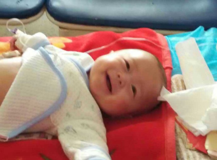 5个月大的小御田还不会说话,却会对着来看望他的人们笑,笑得那样甜美可爱,尽管在父亲给伤口换药时他疼痛得满头大汗,大部分时间他很乖巧,不哭不闹,自己玩着小手指……