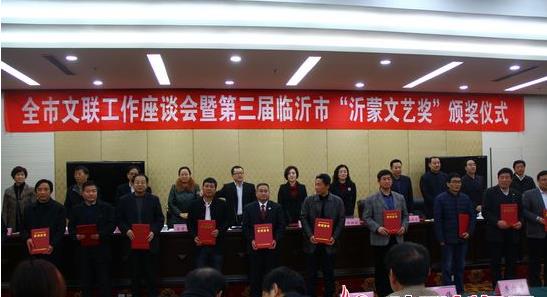 临沂市文联工作座谈会议暨第三届临沂市“沂蒙文艺奖”颁奖仪式于17日上午举行,会议表彰了66名文艺工作者及其作品。
