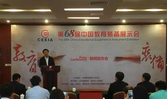 27号下午4点,第68届中国教育装备展示会新闻发布会在新闻大厦召开,中国教育装备行业协会秘书长夏国明就本届教育装备展示会的情况做详细介绍,山东省学校生产供应管理处处长冯俊华主持会议。