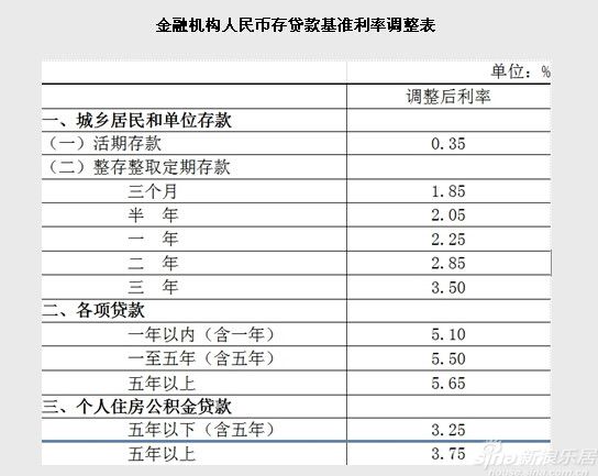 中国人民银行决定,自2015年5月11日起下调金融机构人民币贷款和存款基准利率。金融机构一年期贷款基准利率下调0.25个百分点至5.1%;一年期存款基准利率下调0.25个百分点至2.25%,同时结合推进利率市场化改革,将金融机构存款利率浮动区间的上限由存款基准利率的1.3倍调整为1.5倍;其他各档次贷款及存款基准利率、个人住房公积金存贷款利率相应调整。
