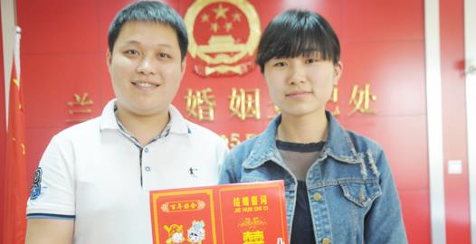 “现依照《中华人民共和国婚姻法》的规定,我们自愿结为夫妻,今后,无论贫穷与富贵,我们都将患难与共,风雨同舟,携手共建美好家园。”20日上午,一对新人赵艺与范建磊在兰山区婚姻登记处领了结婚证后庄严宣誓。据他们介绍,他们9点就来到婚姻登记处准备登记,没想到来登记的情侣这么多。“主要都是奔着‘我爱你’这个谐音来的,能在今天结婚感觉寓意更好。”赵艺说。