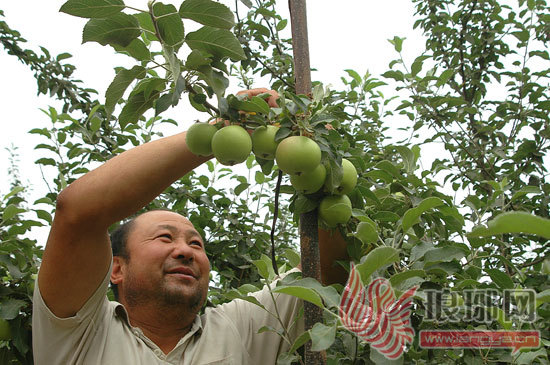 可是张朝国却独辟蹊径,心里另有一番打算:多产几斤果子,一棵树虽说能多卖个几十块钱,可是还不如控制产量,让果树长好树形,多留取接穗繁育苗木更赚钱。自从张朝国种植的新品种苹果成功后,前来取经和联系买苗木的人很多,让张朝国从中嗅出了商机。当年他就繁育苗木近三万株,2009年春天卖到五元一株,着着实实地让他发了一大笔。