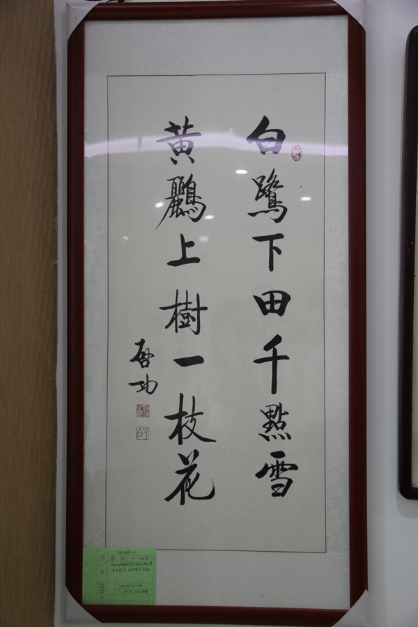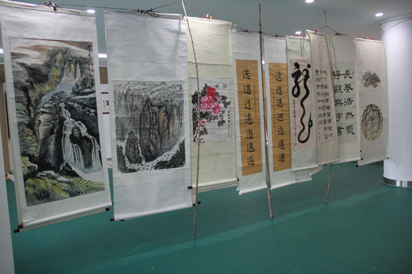 此外,由孙太东老师个人举办的“名人书画收藏展”在拓普书画院同时进行,作品有70余幅,所有作品均对外出售。其中,有启功书法作品一幅,价值10万元以上;著名画家岭南派五人成员之一宋文志国画山水一幅,价值5万以上;吕志奇书法作品四幅,每幅价值八千左右;此外,还有6幅书画长卷,最长18米。