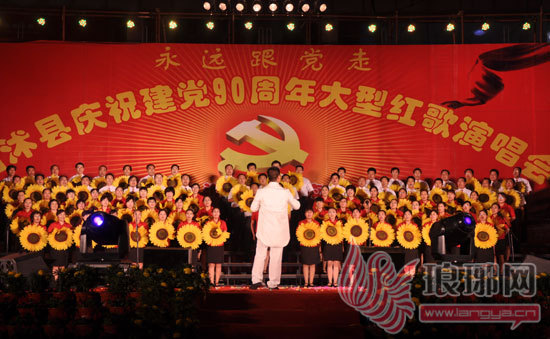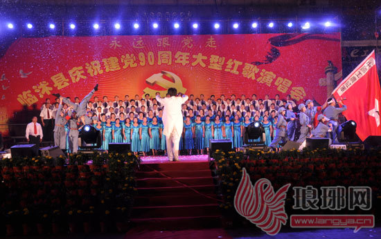 6月21--22日晚,县文化广场人山人海,灯火辉煌,歌声飘扬,红旗猎猎。临沭县纪念建党90周年“永远跟党走”大型红歌演唱会在县文化广场拉开序幕。本次活动是由中共临沭县委、临沭县人民政府主办,县纪委、县委组织部、县委宣传部、县直机关工委、县文广新局承办,沂蒙老区酒业有限公司协办。演唱会所选歌曲经典、表演形式新颖、演出效果良好,表现了临沭人朝气蓬勃、斗志昂扬、忠心向党、共铸辉煌的精神风貌。最后,县委、县政府部分领导和全体人员共同唱响《歌唱祖国》,把晚会推向了高潮。