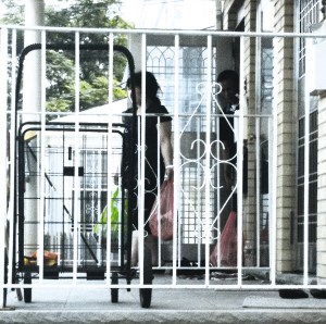 被砍伤的房东林女士的左脸被纱布包着,刚出院。她正拎着生活必需品准备去医院看望儿子。