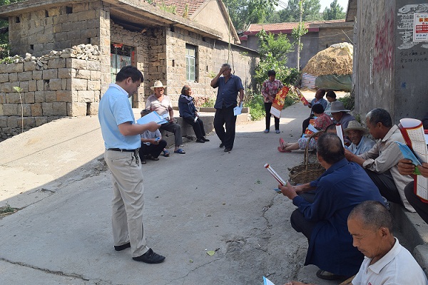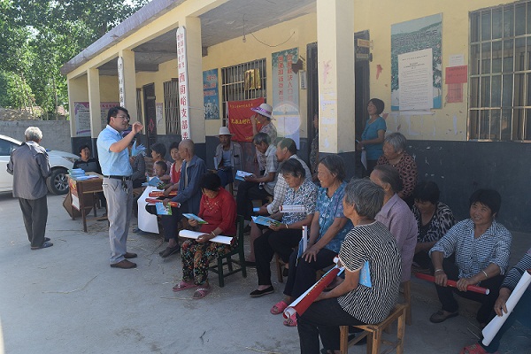 6月13日,费县马庄镇芍药山卫生院院长、党支部书记明华到小山村西南峪“健康山村行2015”,宣讲健康保健
