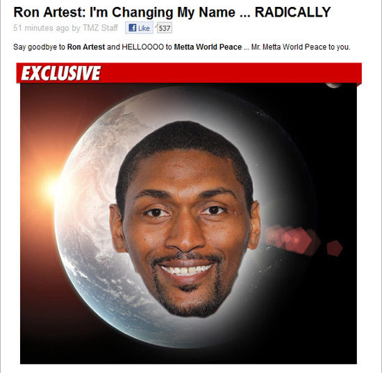 新浪体育讯 也许阿泰斯特的想法,全世界没有人能明白。这不,好不容易有个愉快的假期,阿泰又做了一个惊人的举动!北京时间6月24日,阿泰斯特表示,自己在新赛季将会更改名字,而野兽的新名字为“Metta World Peace”,中文直译为“慈善-世界-和平”。