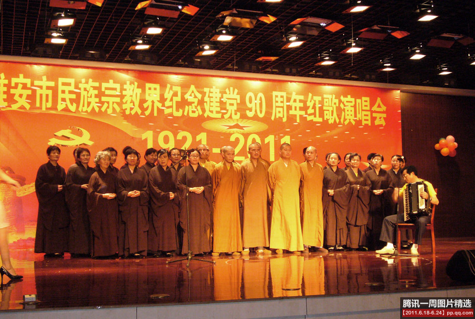 6月20日下午,淮安市民族宗教界纪念建党90周年红歌演唱会在淮阴卫校礼堂举行,市属5个民族宗教团体和市民宗局参加了演出。22个节目琳琅满目,演唱会高潮迭起,使广大民族宗教受到了一次深刻爱国主义教育。市政府副市长陆长苏观看了演出。