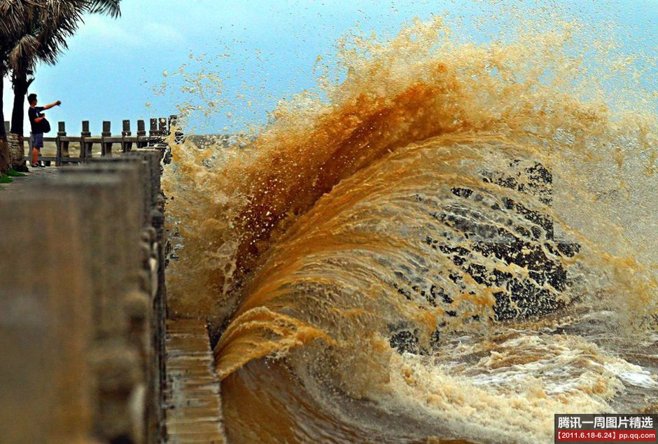 2011年6月22日,影响珠海市的热带低压升级为热带风暴,受台风影响,海面掀起一阵阵大浪。