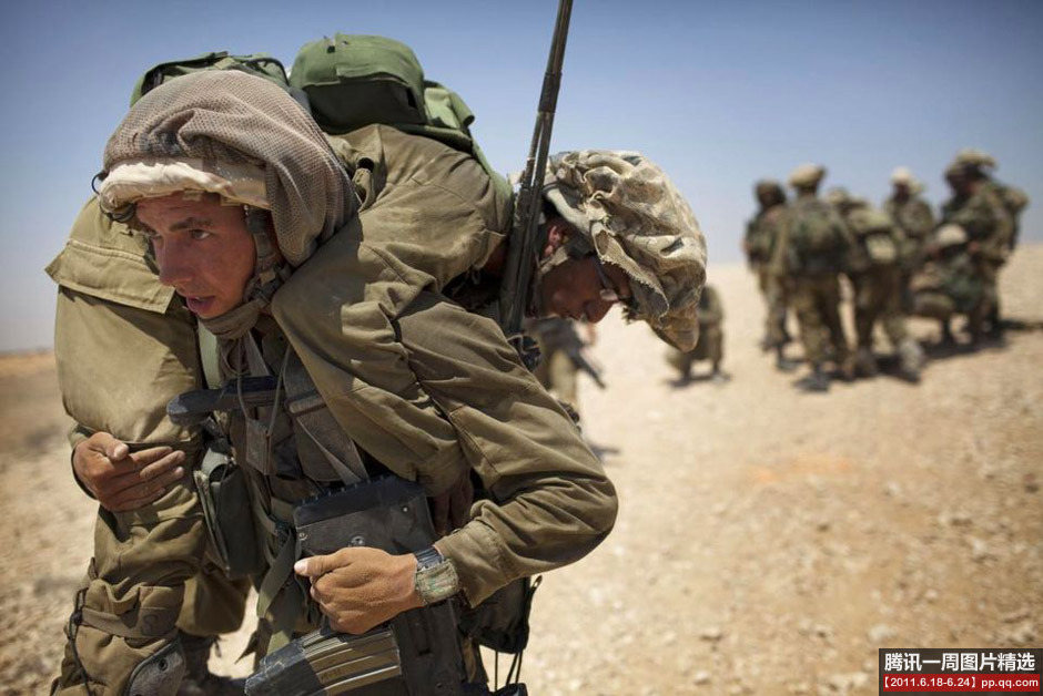 2011年6月23日,以色列步兵团士兵在以色列南部沙漠中进行战斗演习。