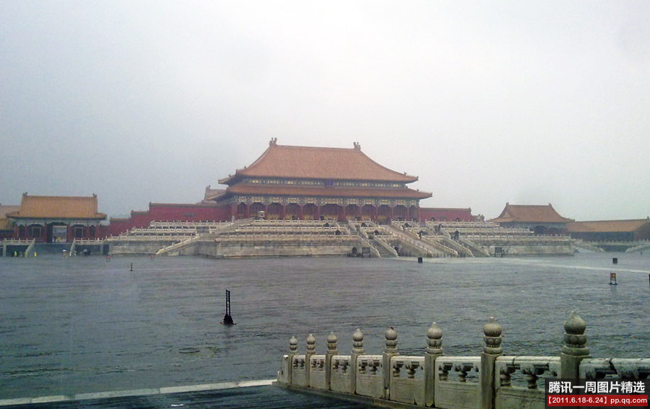 6月23日下午,北京遭遇十年以来最大降雨,局部地区雨量达到百年一遇标准。大雨导致多条环路及主干道积水拥堵,部分环路断路,地铁1号线、13号线、亦庄线等线路部分区段停运。图为故宫积水严重,被网友戏称为“带你到故宫去看海”。